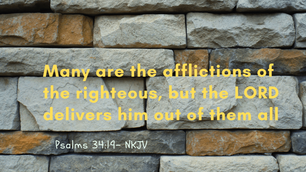 Many are the afflictions of the righteous, but the LORD delivers him out of them all. (Psalms 34:19- NKJV)